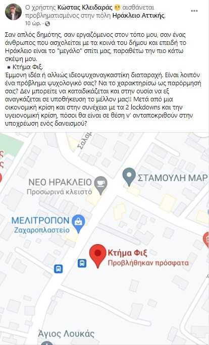 Ο Κώστας Κλειδαράς, μέσα από την ομάδα Καναπίτσα – Ηράκλειο Αττικής ξεσπάει κατά της απόφασης της δημοτικής Αρχής με το παρακάτω post:
