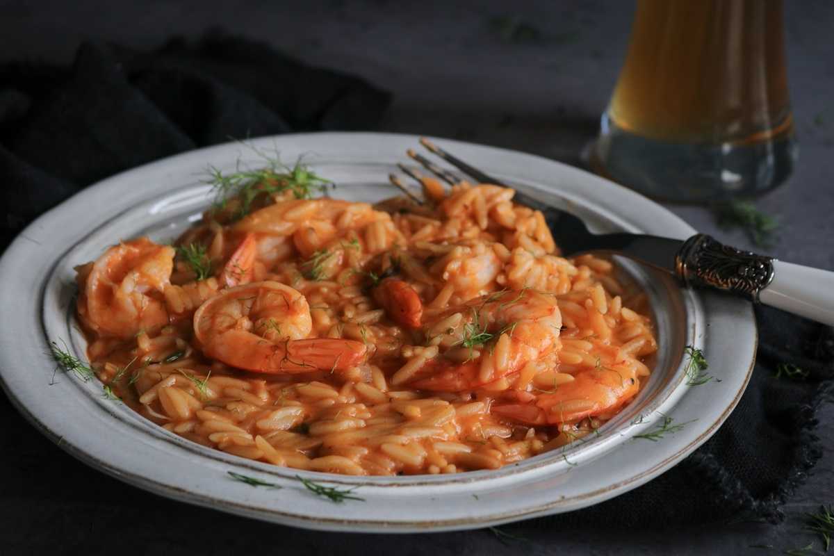 Όσον αφορά στο χειρισμό της γαρίδας, για το μέγεθος φρέσκιας γαρίδας που βρίσκετε σε ιχθυοπωλεία και σούπερ μάρκετ, δεν χρειάζονται πάνω από 2 λεπτά στο σκεύος υπό θερμότητα. Άλλωστε θα μεσολαβήσουν άλλα 2-3 λεπτά αφότου το τηγάνι σας θα έχει αφαιρεθεί απ’ τη φωτιά και οι γαρίδες θα συνεχίσουν να ψήνονται από το κριθαράκι που είναι ζεστό.