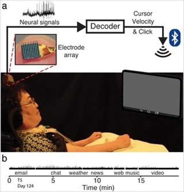 Σε μελέτη που δημοσιεύτηκε στις 21 Νοεμβρίου στο PLOS ONE, τρεις τετραπληγικοί- ο καθένας εκ των οποίων χρησιμοποιούσε το BrainGate BCI, που καταγράφει τη νευρική δραστηριότητα απευθείας από έναν μικρό αισθητήρα στον κινητικό φλοιό του εγκεφάλου- ήταν σε θέση να πλοηγηθούν σε συνηθισμένα κατά τα άλλα προγράμματα tablet, όπως e-mail, chat, streaming μουσικής και εφαρμογές διαμοιρασμού βίντεο. Οι συμμετέχοντες στη δοκιμή μίλησαν με συγγενείς, φίλους, μέλη της ερευνητικής ομάδας και μεταξύ τους- ενώ επίσης περιηγήθηκαν στο Web, είδαν τον καιρό και έκαναν online αγορές. Μάλιστα, ο ένας, ένας μουσικός, έπαιξε και κομμάτι του Μπετόβεν σε ένα interface ψηφιακού πιάνου.