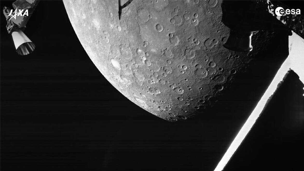 Η σημαδεμένη επιφάνεια του Ερμή και ειδικότερα το βόρειο ημισφαίριο διακρίνεται στη φωτογραφία που κατέγραψε το ευρωπαϊκό σκάφος BepiColombo.