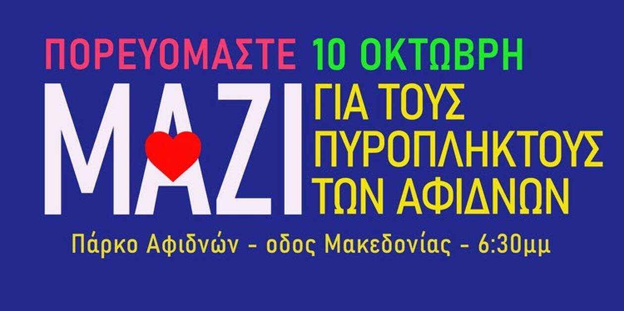 Είναι στο χέρι μας να αναστρέψουμε αυτή την καταστροφή “Πορευόμαστε μαζί” είναι το μήνυμα με το οποίο οι σύλλογοι της περιοχής των Αφιδνών (ο Εξωραϊστικός Σύλλογος Δροσοπηγής Αφιδνών, ο ΣΕΑΔ (Σύλλογος Εθελοντών Αφιδνών Δασοπροστασίας), η ΜΑΚΙΠ (Μονάδα Αντιμετώπισης Καταστροφών Ιπποκράτειου Πολιτείας), ο Πολιτιστικός Σύλλογος Αφίδνες 2000 και ομάδα κατοίκων των Αφιδνών, Δροσοπηγής και Ιπποκράτειου Πολιτείας), σας προσκαλούν στην εκδήλωση- συναυλία “Πορευόμαστε μαζί” που διοργανώνουν με σκοπό τη στήριξη και ενίσχυση των πυρόπληκτων κατοίκων.