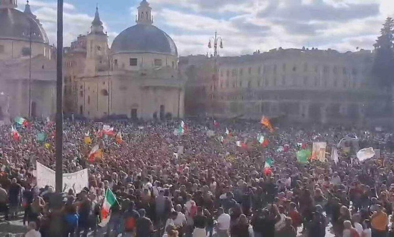 Ένταση επικράτησε μεταξύ αντιεμβολιαστών διαδηλωτών και αστυνομίας στην κεντρική πλατεία του Λαού της Ρώμης, το απόγευμα του Σαββάτου (9/10)