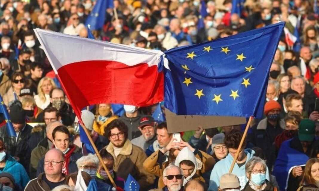 Δεκάδες χιλιάδες Πολωνοί σε όλη τη χώρα διαδήλωσαν σήμερα κατά μιας αμφιλεγόμενης απόφασης του Συνταγματικού Δικαστηρίου και υπέρ της παραμονής της χώρας τους στην Ευρωπαϊκή Ένωση.