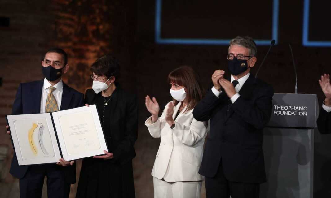 Η Πρόεδρος της Δημοκρατίας Κατερίνα Σακελλαροπούλου απένειμε, με τον Πρόεδρο της Διοικούσας Επιτροπής του Ιδρύματος Θεοφανώ Σταύρο Ανδρεάδη και τον Πρόεδρο της Συμβουλευτικής Επιτροπής Χέρμαν Φαν Ρομπέι, το βραβείο «Αυτοκράτειρα Θεοφανώ» στον Δρ. Ουγούρ Σαχίν και στην Δρ. Εζλέμ Τουρετσί.