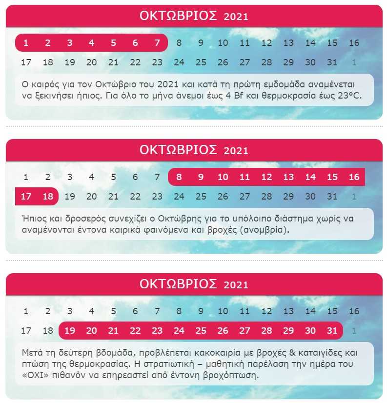 Πρακτική γνώση, μελέτη και πρόβλεψη καιρού ανά μήνα και ειδικά τον τρέχοντα μήνα Οκτώβριο του 2021.
