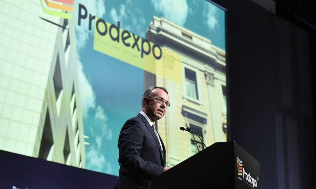 Το στρατηγικό σχέδιο της κυβέρνησης για την ισχυρή ανάκαμψη και την ανάπτυξη της αγοράς ακινήτων, αλλά και την αξιοποίηση της δημόσιας ακίνητης περιουσίας, παρουσίασε ο υπουργός Οικονομικών Χρήστος Σταϊκούρας, μιλώντας στο συνέδριο της 22ης Prodexpo.