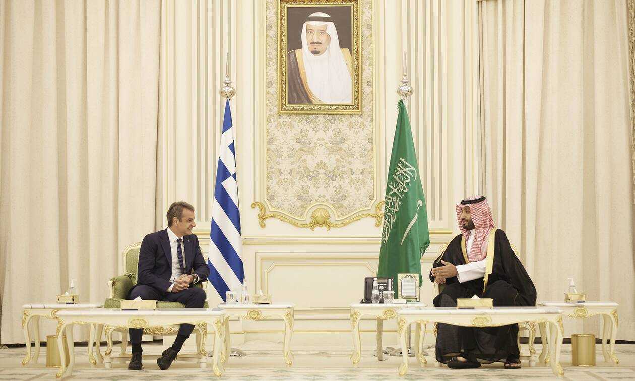 Ο Πρωθυπουργός Κυριάκος Μητσοτάκης συναντήθηκε με τον Διάδοχο του θρόνου της Σαουδικής Αραβίας, Πρίγκιπα Mohammed bin Salman bin Abdulaziz Al Saud, στο ανάκτορο Al Yamamah, στο Ριάντ.