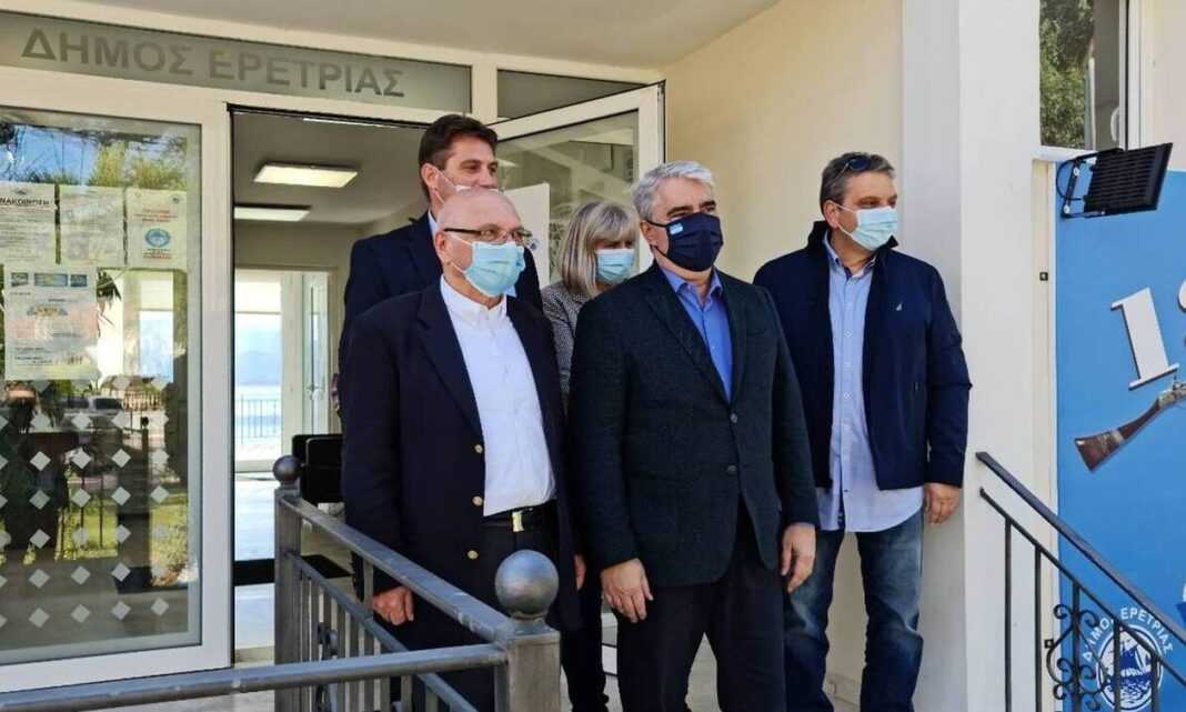 Στη συζήτηση που πραγματοποιήθηκε στο Δημαρχείο Ερέτριας, παραβρέθηκαν επίσης η Αντιδήμαρχος Τεχνικών Έργων κ. Παναγιώτα Μπουγά, η Αντιδήμαρχος Οικονομικών κ. Μαρία Παπαγγελή, ο Αντιπρόεδρος της Δημοτικής Επιχείρησης Ύδρευσης Ερέτριας (ΔΕΥΑΕ) κ. Πέτρος Σμιλάκος, ο Αντιδήμαρχος Καθαριότητας κ. Ευάγγελος Τσώκος και ο Πρόεδρος του Νομικού Προσώπου του Δ. Ερέτριας «Ο Δαφνηφόρος Απόλλων» κ. Δημήτρης Τσούμαρης.