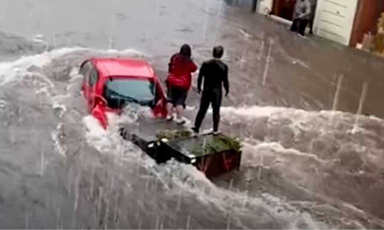 Οι δρόμοι μετατράπηκαν κυριολεκτικά σε λίμνες, ενώ μέσα σε λίγες ώρες έπεσαν 300 χιλιοστά βροχής, ποσότητα που αντιστοιχεί στη μισή ποσότητα βροχής που πέφτει στη Σικελία όλο το χρόνο.