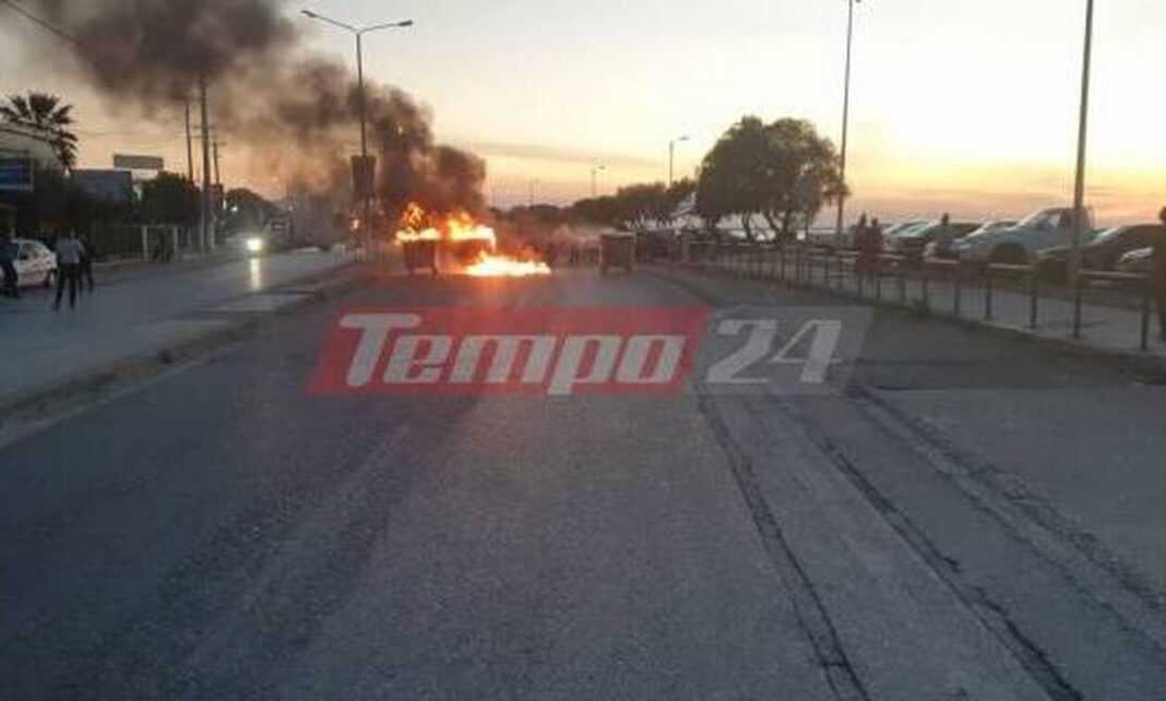 Κλειστή παραμένει η Πατρών – Πύργου στο ύψος των Ιτεών καθώς Ρομά καίνε κάδους και διαμαρτύρονται για τον θάνατο απο πυροβολισμούς αστυνομικών του 20χρονου στο Πέραμα.