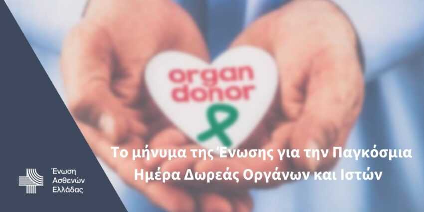 Με αφορμή την Παγκόσμια Ημέρα Δωρεάς Οργάνων, σήμερα 1 Νοεμβρίου, η Ένωση Ασθενών Ελλάδας στέλνει το δικό της μήνυμα για την αξία της δωρεάς οργάνων σώματος, που μέσω της μεταμόσχευσης χαρίζουν το πολύτιμο δώρο της ζωής σε πάσχοντες συνανθρώπους μας.