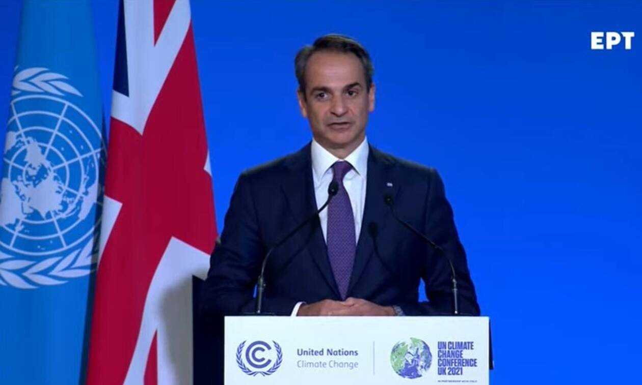 Ο πρωθυπουργός Κυριάκος Μητσοτάκης πραγματοποιεί ομιλία αυτή την ώρα στο πλαίσιο των Ηνωμένων Εθνών για την κλιματική αλλαγή COP26, η οποία λαμβάνει χώρα στη Γλασκώβη.
