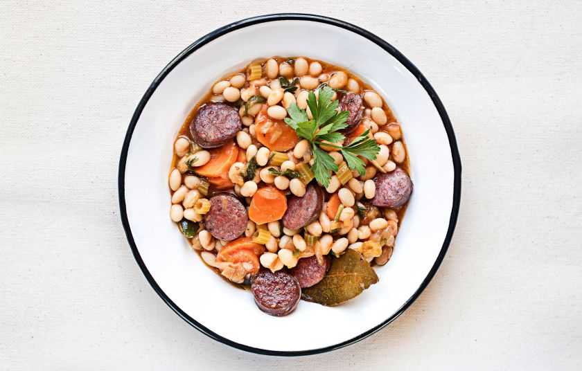 Εχει όλα τα απαραίτητα για μια πλούσια χειμωνιάτικη φασόλαδα. Δεν θα μπορούσαν, φυσικά, να λείπουν τα ντόπια λουκάνικα.