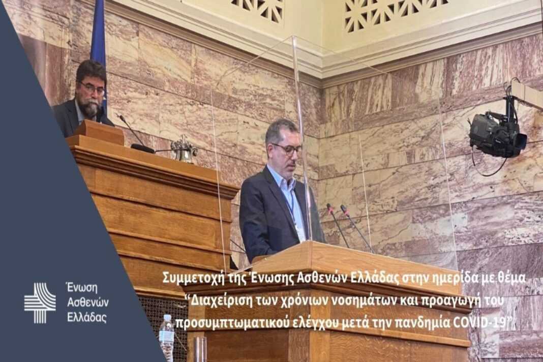 Η Ένωση Ασθενών Ελλάδας συμμετείχε την Τετάρτη 3 Νοεμβρίου στην ημερίδα που διοργάνωσε η Διαρκής Επιτροπή Κοινωνικών Υποθέσεων της Βουλής με θέμα «Διαχείριση των χρόνιων νοσημάτων και προαγωγή του προσυμπτωματικού ελέγχου μετά την πανδημία COVID-19». Την εκδήλωση χαιρέτισε ο Πρωθυπουργός, κ. Κυριάκος Μητσοτάκης. Επικεντρώθηκε στην αξία του εμβολιασμού, ως μέσο πρόληψης κατά της πανδημίας, ζητώντας από τους πολίτες που ακόμα δεν εμβολιάστηκαν να το πράξουν άμεσα.