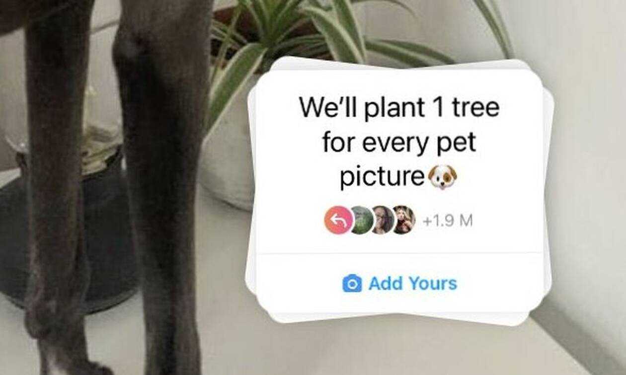 Στο δημοφιλές μέσο κοινωνικής δικτύωσης, υπάρχει το «Add Yours», ένα νέο αυτοκόλλητο στα stories με σκοπό την αλληλεπίδραση των χρηστών. Ένα από τα αυτοκόλλητα, έλεγε «θα φυτέψουμε ένα δέντρο για κάθε φωτογραφία κατοικίδιου» και όπως ήταν λογικό, οι χρήστες ευαισθητοποιήθηκαν.