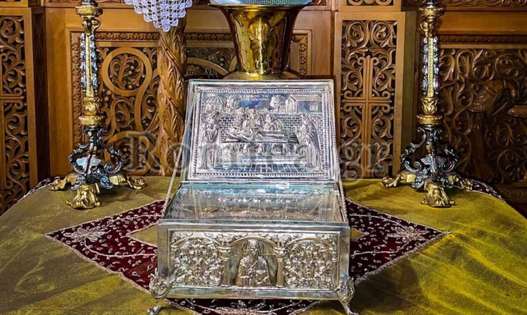 Στο τέλος της Θείας Λειτουργίας πραγματοποιήθηκε μικρή λιτανεία της ιεράς εικόνας και των λειψάνων πέριξ του ιερού ναού.