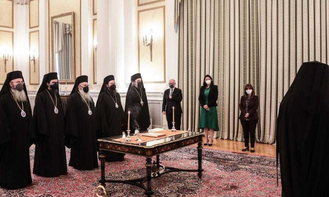 Τις νενομισμένες διαβεβαιώσεις ενώπιον της Προέδρου της Δημοκρατίας Κατερίνας Σακελλαροπούλου, παρουσία του Αρχιεπισκόπου Αθηνών και πάσης Ελλάδος κ.κ. Ιερωνύμου έδωσαν σήμερα στο Προεδρικό Μέγαρο οι πέντε νέοι Μητροπολίτες που εξελέγησαν από την Ιερά Σύνοδο της Ιεραρχίας της Εκκλησίας της Ελλάδος.