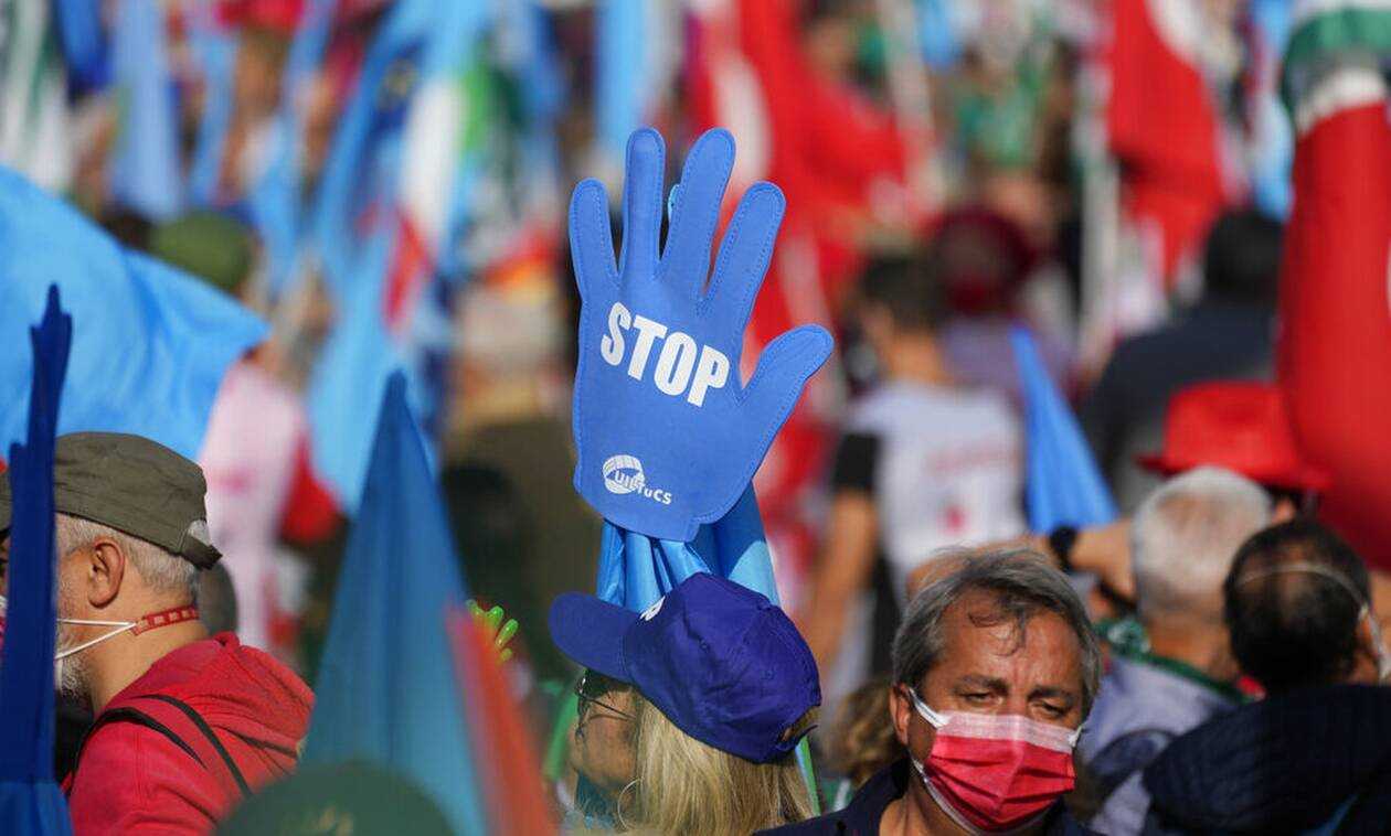 Στην Ρώμη, οι αμφισβητίες του «πράσινου πάσου» προχώρησαν μόνον σε καθιστική διαμαρτυρία (η οποία επιτρέπεται από τους νέους κανόνες) με σύνθημα: «είμαστε ο λαός της κάθε ιταλικής πλατείας».