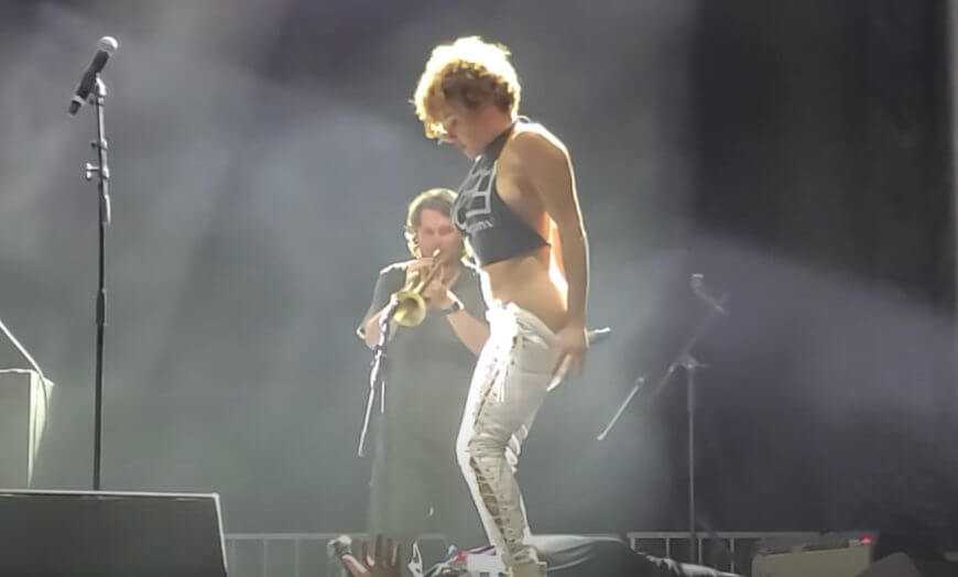 «Πρέπει να κατουρήσω και δεν μπορώ να πάω στην τουαλέτα. Οπότε θα μπορούσαμε κάλλιστα να κάνουμε ένα σόου με αυτό», είπε χαρακτηριστικά η τραγουδίστρια, η οποία μάλιστα, την ώρα που ουρούσε, τραγουδούσε το «Wake Up» των Rage Against The Machine!