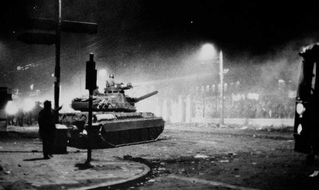 Ώρα 12 τη νύχτα μπαίνει στην Αθήνα στρατός και τανκ και καταλαμβάνουν επίκαιρες θέσεις.