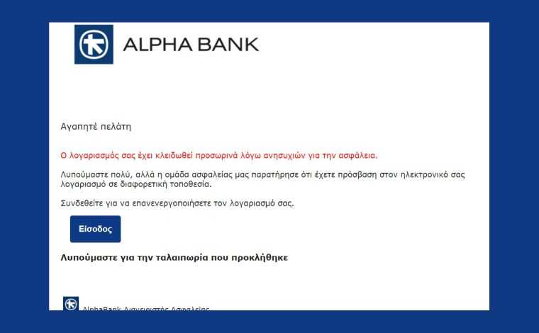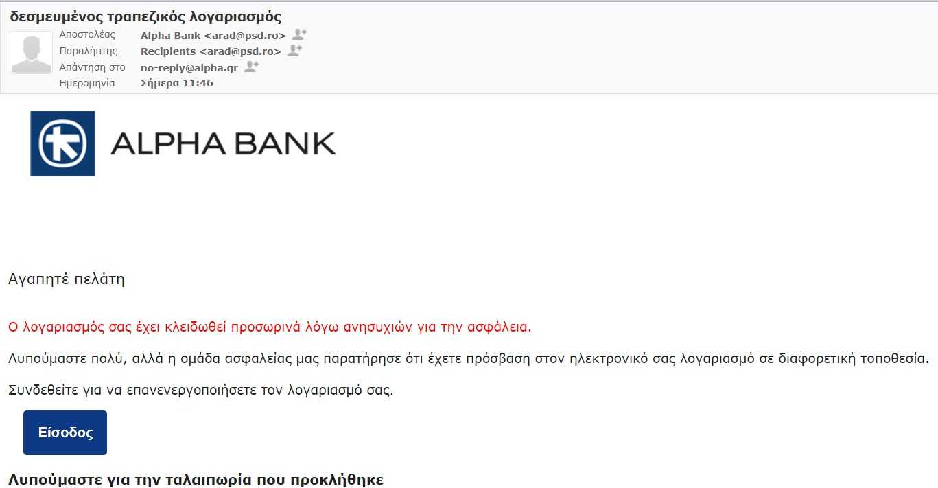 Προσοχή. Οι τράπεζες ΔΕΝ στέλνουν ποτέ email και ΔΕΝ ζητάνε ποτέ κωδικούς εισόδου.