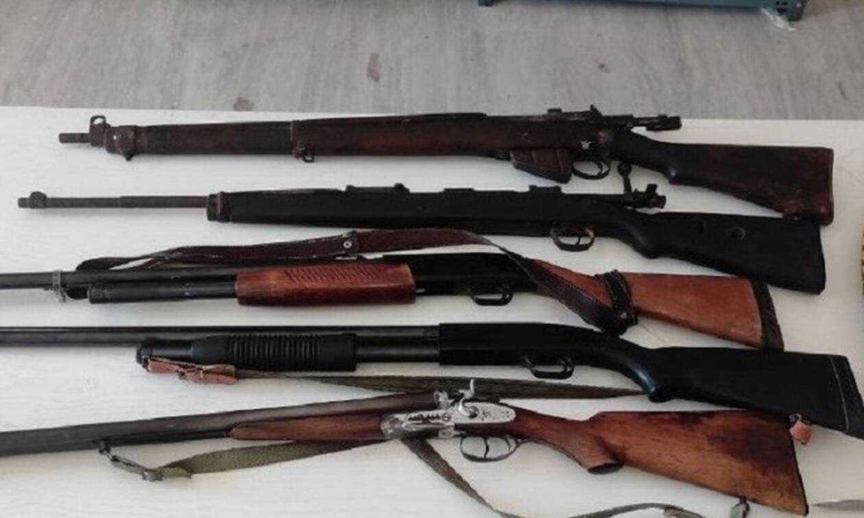 Κατά την διάρκεια της έρευνας στο σπίτι του Ηρακλείου βρέθηκαν και κατασχέθηκαν 2 πολεμικά τυφέκια,3 κυνηγετικά όπλα, γεμιστήρα πολεμικού τυφεκίου και 20 φυσίγγια