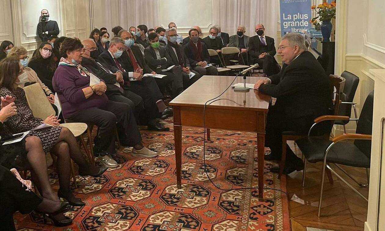 Σε εκδήλωση υπό την αιγίδα της Γενικής Γραμματείας Απόδημου Ελληνισμού και Δημόσιας Διπλωματίας και της Πρεσβείας της Ελλάδας στη Γαλλία, που έλαβε χώρα ενώπιον πολυάριθμου ακροατηρίου στο «Σπίτι της Ελλάδας», παρουσία του Πρέσβη της Κυπριακής Δημοκρατίας στο Παρίσι, κ. Γ. Σιακκαλή, ο κ. Χρυσουλάκης συμμετείχε στην παρουσίαση του βιβλίου «Les Enfants du Lievre» του κ. Νικόλα Χριστοδούλου, Προέδρου της ΑΜΟΡΑ και διευθυντικού στελέχους στο Γαλλικό Ινστιτούτο της Αθήνας, παρουσία εκπροσώπων της ελληνικής και κυπριακής κοινότητας και της γαλλικής διανόησης. Όπως τόνισε στο χαιρετισμό του ο κ. Χρυσουλάκης, «η Γενική Γραμματεία Απόδημου Ελληνισμού και Δημόσιας Διπλωματίας στηρίζει τη δημιουργικότητα των συμπατριωτών μας, Ελλήνων και Κυπρίων, σε όποιο μέρος της γης κι αν βρίσκονται και διαπρέπουν. Είμαστε και θα είμαστε πάντα στο πλευρό τους και προσβλέπουμε στη συνεχή συνεργασία μας». Στο πλαίσιο ανάπτυξης επαφών με ακαδημαϊκούς κύκλους της Γαλλίας, ο κ. Χρυσουλάκης είχε την ευκαιρία να συναντηθεί με τους καθηγητές της Σορβόννης που συμμετείχαν στην παρουσίαση του βιβλίου, κ. Oliviet Soutet, γλωσσολόγο και πρύτανη στο Τμήμα Φιλολογίας του Institut Catholique de Paris και κ. Denis Labouret, καθηγητή σύγχρονης λογοτεχνίας.