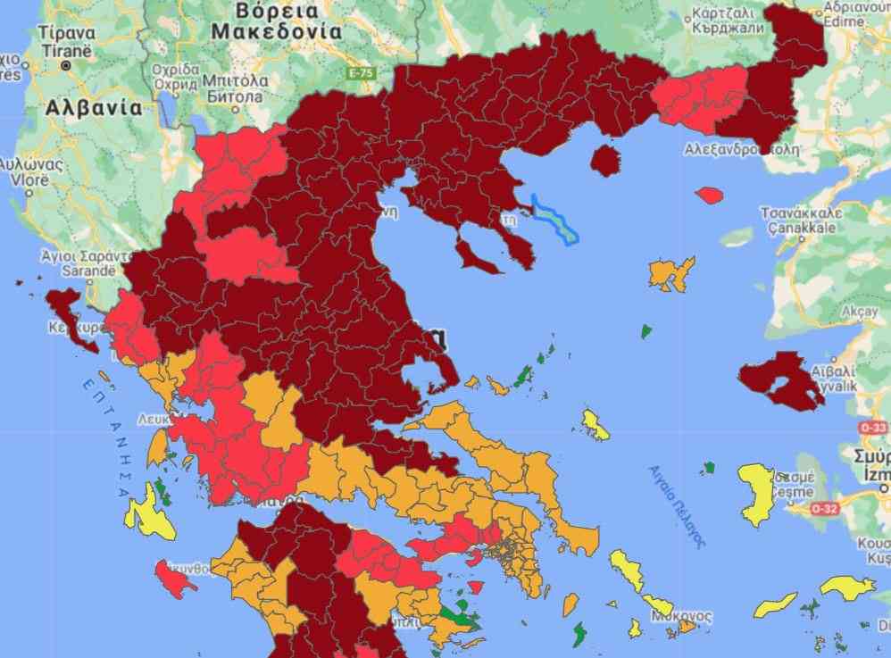 Τρεις νέες περιοχές στο βαθύ κόκκινο, στον νέο εβδομαδιαίο επιδημιολογικό χάρτη