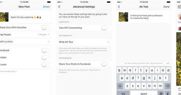 Ακόμη, γίνεται διαθέσιμη η επιλογή προσθήκης κειμένου για όλους τους χρήστες που θέλουν να εμπλουτίσουν το περιεχόμενο τους. Άλλωστε, οι περιγραφές “alt text” είναι διαθέσιμες στο Facebook (και γενικότερα σε πολλές πλατφόρμες του Internet) εδώ και πολλά χρόνια και σαφέστατα είναι ένα καλό βήμα και για το Instagram.