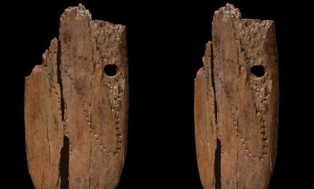 Η διακόσμηση του κρεμαστού, μήκους 4,5 εκατοστών, πλάτους 1,5 εκατοστού και πάχους 3,7 χιλιοστών, περιλαμβάνει δύο τρύπες (πιθανότατα για να κρεμιέται με κλωστή από αυτές) και τουλάχιστον 50 μικροσκοπικά σημάδια που σχηματίζουν ένα ασύμμετρο μοτίβο. Πιθανώς το κρεμαστό λειτουργούσε ως φυλακτό στη διάρκεια του κυνηγιού άγριων ζώων ή η διακόσμησή του σχετιζόταν με αστρονομικά σύμβολα όπως τους κύκλους της Σελήνης και του Ήλιου.