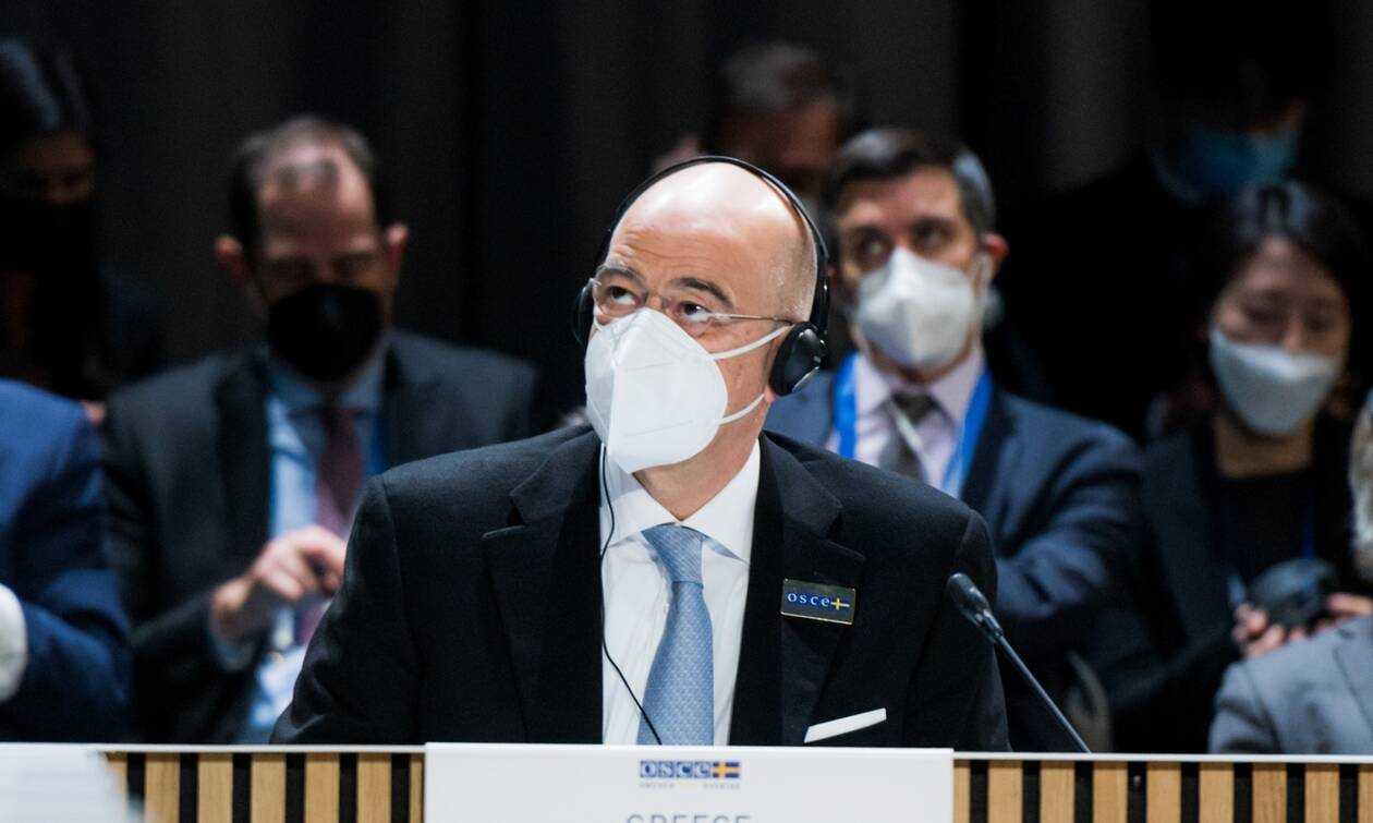 Ο Έλληνας υπουργός Εξωτερικών, Νίκος Δένδιας, συμμετέχει στη Σύνοδο του ΟΑΣΕ.