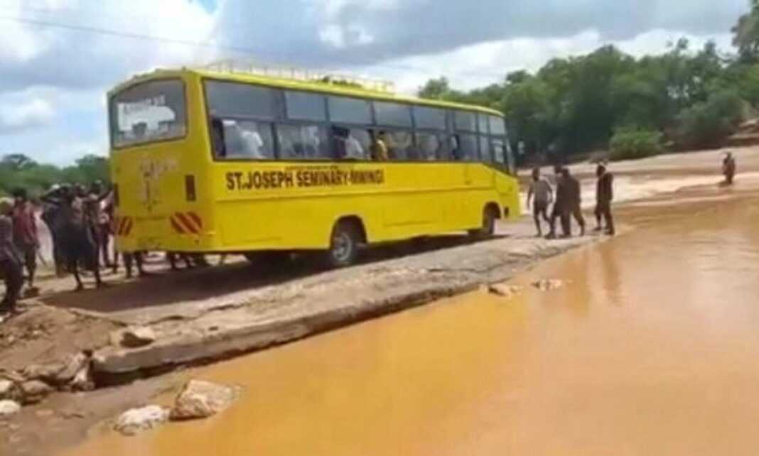 Το λεωφορείο, που μετέφερε μια εκκλησιαστική χορωδία και άλλους ανθρώπους σε γαμήλια τελετή στην κομητεία Κιτούι, ανατράπηκε πριν βυθιστεί.