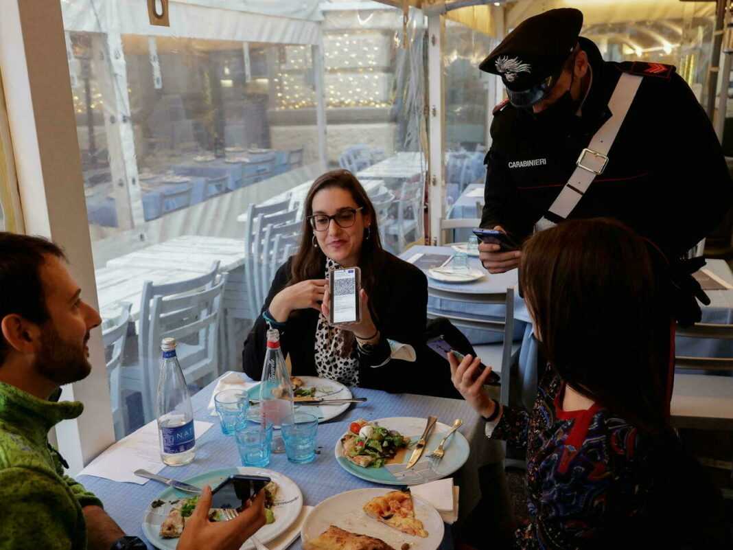 Η ιταλική αστυνομία μπορεί να ελέγξει εάν αυτοί που βρίσκονται στα εστιατόρια ή μπαρ διαθέτουν «σούπερ» πράσινο πάσο υγείας που πιστοποιεί ότι είτε έχουν εμβολιαστεί είτε ότι έχουν αναρρώσει πρόσφατα από τον ιό.