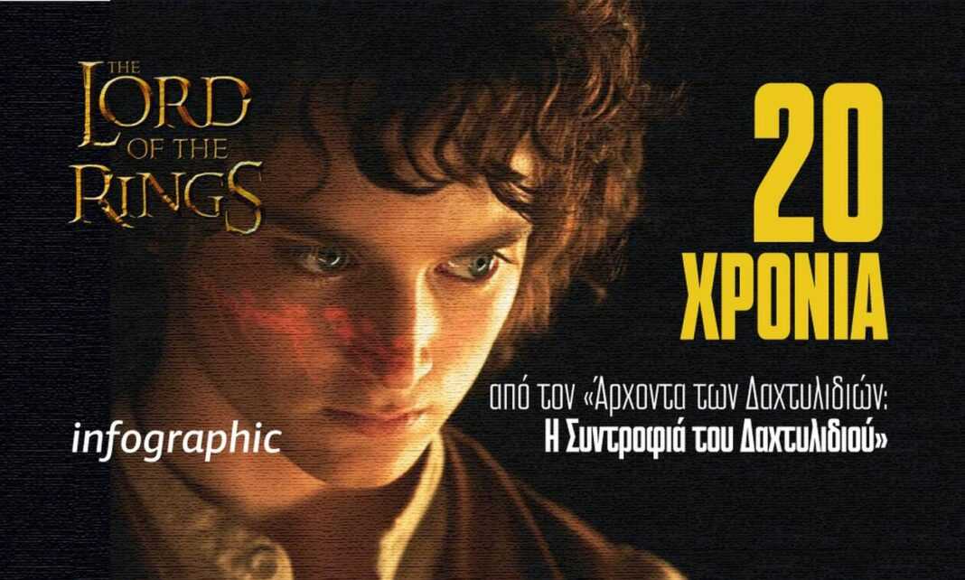 Είκοσι χρόνια συμπληρώνονται φέτος τον Δεκέμβριο από την επική ταινία φαντασίας «Ο Άρχοντας των Δαχτυλιδιών: Η Συντροφιά του Δαχτυλιδιού» (The Lord of the Rings: The Fellowship of the Ring) σε σκηνοθεσία Πίτερ Τζάκσον.