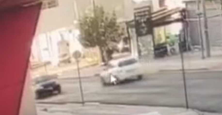 Στο βίντεο φαίνεται το όχημα να περνάει μπροστά από το κτήριο, να κάνει αναστροφή και οι δράστες να αδειάζουν το όπλο.