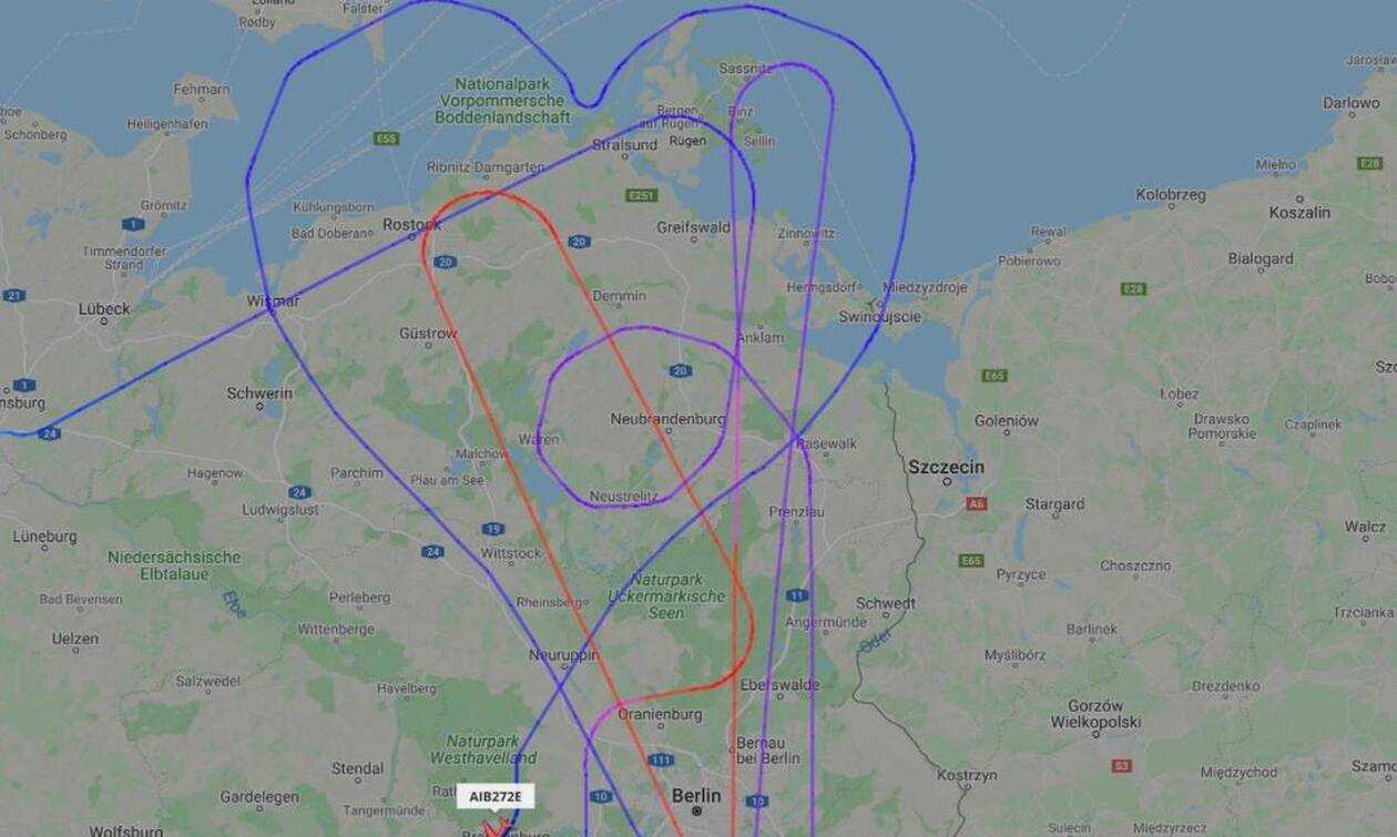 Το αεροσκάφος απογειώθηκε από τις εγκαταστάσεις της Airbus στο αεροδρόμιο Hamburg-Finkenwerder για μία βόλτα πάνω από τη βορειοδυτική Γερμανία. Οι πιλότοι ακολούθησαν μια πολύ ιδιαίτερη διαδρομή, σημειώνοντας το περίγραμμα μιας καρδιάς, όπως μεταδίδει το cnn.