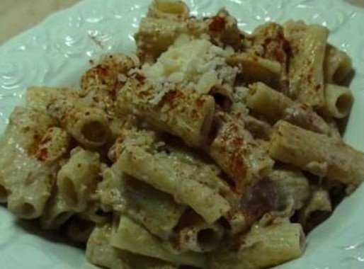 Διευκολύνουμε ακόμη περισσότερο το μείγμα να ομογενοποιηθεί σε λεία κρέμα με την προσθήκη και λίγου από το πλούσιο σε άμυλο νερό του βρασμού των ζυμαρικών (περίπου ¾ της κουτάλας, ή 45-50 ml).