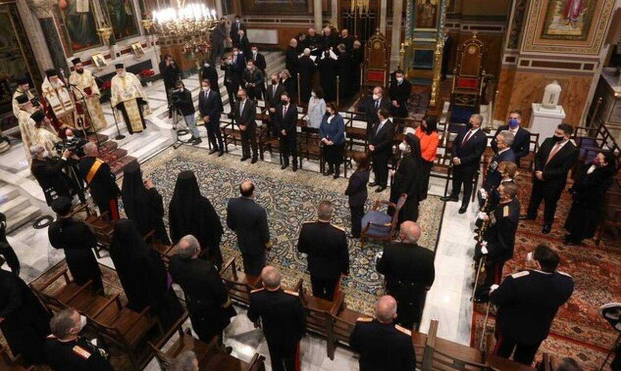 Παρέστησαν, η ΠτΔ κ. Κατερίνα Σακελλαροπούλου, ο Πρωθυπουργός κ. Κυριάκος Μητσοτάκης, ο Μητροπολίτης Γουινέας κ. Γεώργιος, εκπρόσωπος του Πατριάρχη Αλεξανδρείας κ. Θεοδώρου στην Αθήνα, ο Έξαρχος του Παναγίου Τάφου στην Ελλάδα, Αρχιμανδρίτης Ραφαήλ Γρίβας, εκπρόσωποι άλλων εκκλησιών, κομμάτων της Βουλής, των Ενόπλων Δυνάμεων και των Σωμάτων Ασφαλείας.