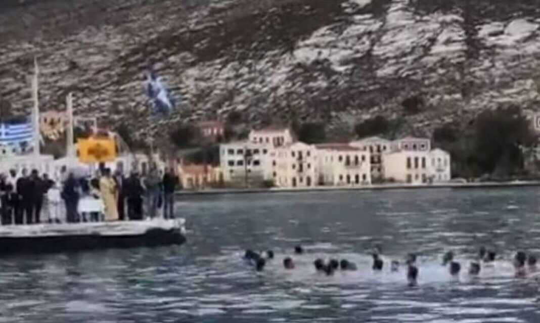Η ομάδα των ακριτών από την Ορεστιάδα είχε φτάσει στο Καστελλόριζο από την Τετάρτη και την ημέρα των Θεοφανείων βρέθηκε στον Αγιασμό των Υδάτων. Τα μέλη της έπεσαν στα παγωμένα ελληνικά νερά για τον Σταυρό, ενώ στη συνέχεια όλοι μαζί, χωρίς να βγουν στη στεριά, έψαλλαν με βροντερή φωνή τον Εθνικό Ύμνο.