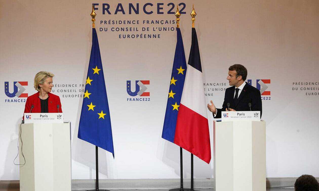 «Θα προτείνουμε μαζί το όραμά μας για μια αρχιτεκτονική της ευρωπαϊκής ασφάλειας», δήλωσε ο Γάλλος πρόεδρος, η χώρα του οποίου ασκεί κατά το πρώτο εξάμηνο του 2022 την εναλλασσόμενη προεδρία της ΕΕ.