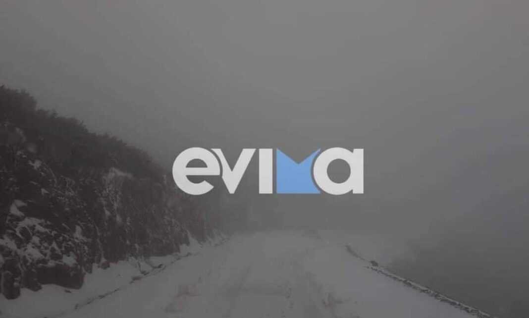 Από νωρίς το πρωί η πυκνή χιονόπτωση στα ορεινά της Νότιας Εύβοιας.