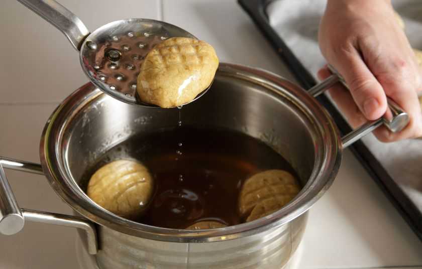 Το μελομακάρονο πρέπει να είναι πάντα ζεστό όταν το ρίχνουμε σε κρύο σιρόπι. Στη διάρκεια της διαδικασίας, καθώς τα μελομακάρονα είναι ζεστά, το σιρόπι αρχίζει να ζεσταίνεται, οπότε πρέπει να το κρυώνουμε.
