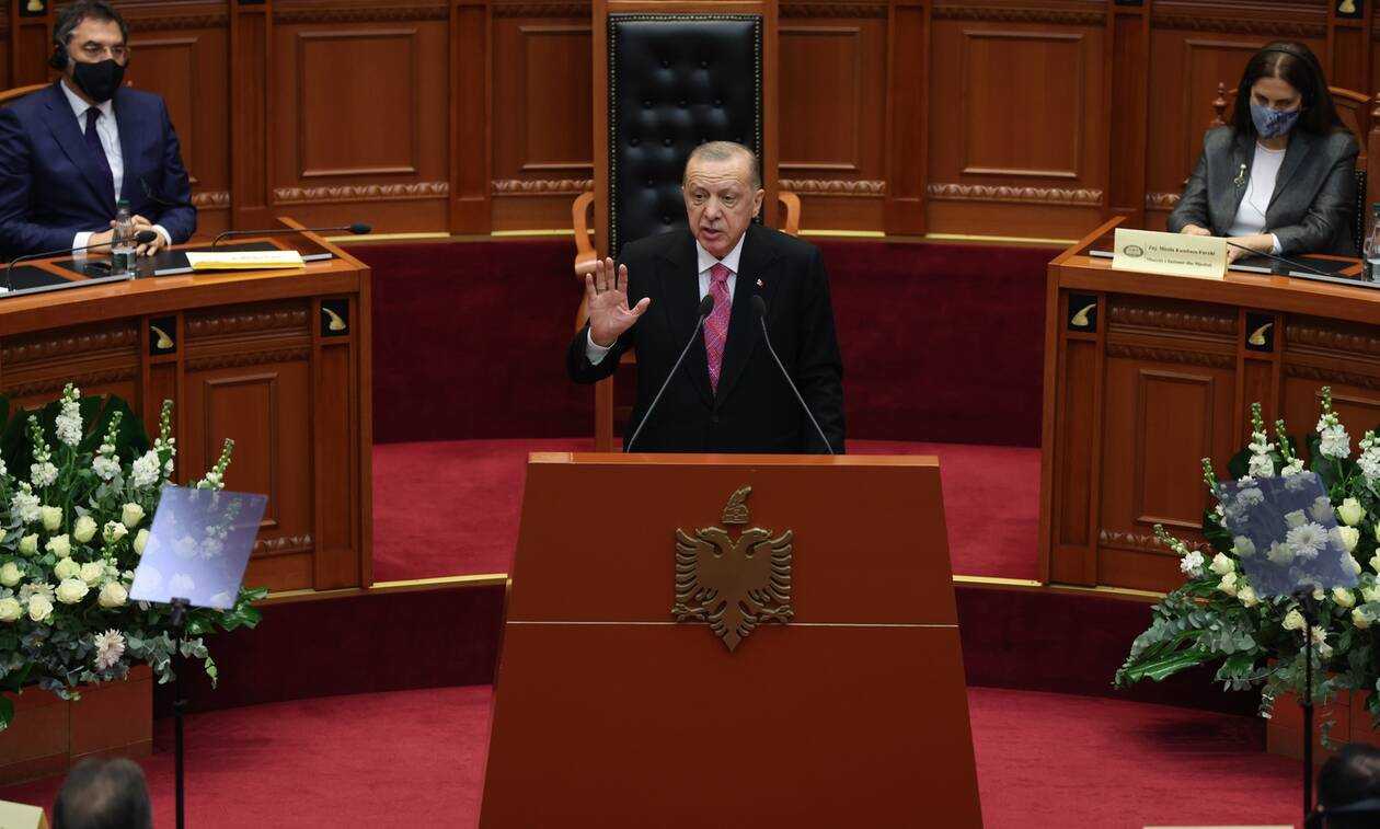 Ο Ερντογάν, μάλιστα, μίλησε στη βουλή της Αλβανίας όπου αποκάλεσε «γείτονα της καρδιάς μας» τη χώρα, δείχνοντας ξεκάθαρα ότι συνεχίζει τη στρατηγική ανεύρεσης συμμάχων. Αξίζει να σημειωθεί πως ο Ερντογάν έφτασε στα Τίρανα μετά από πρόσκληση του Αλβανού πρωθυπουργού συνοδευόμενος από αντιπροσωπεία υψηλού επιπέδου, μεταξύ των οποίων ο Υπουργός Εξωτερικών Μεβλούτ Τσαβούσογλου, ο υπουργός Εθνικής Άμυνας Χουλουσί Ακάρ, ο Υπουργός Εσωτερικών Σουλεϊμάν Σοϊλού, ο Υπουργός Περιβάλλοντος, Αστικοποίησης και Κλιματικής Αλλαγής Μουράτ Κουρούμ, ο Υπουργός Νεολαίας και Αθλητισμού Μεχμέτ Κασάπογλου και τον Υπουργό Πολιτισμού και Τουρισμού Μεχμέτ Νουρί Ερσόι.