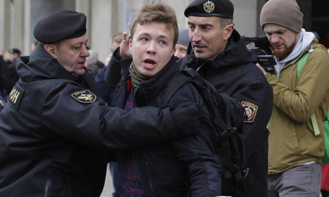 Με πρόσχημα υποτιθέμενη απειλή για βόμβα στο αεροσκάφος, ο λευκορωσικός έλεγχος εναέριας κυκλοφορίας το ανάγκασε να προσγειωθεί στο Μινσκ, προκειμένου να συλληφθούν μετά την προσγείωσή του ο αντιφρονών δημοσιογράφος Ρομάν Πρατασέβιτς και η σύντροφός του Σοφία Σαπέγκα, που επέβαιναν στην πτήση.