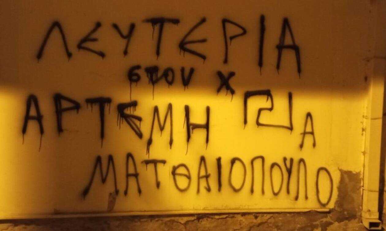 Νέα καταγγελία για βανδαλισμό από την ΚΟΒ Νεάπολης του ΚΚΕ, καθώς άγνωστοι έγραψαν συνθήματα υπέρ του μέλους της Χρυσής Αυγής, Αρτέμη Ματθαιόπουλου.