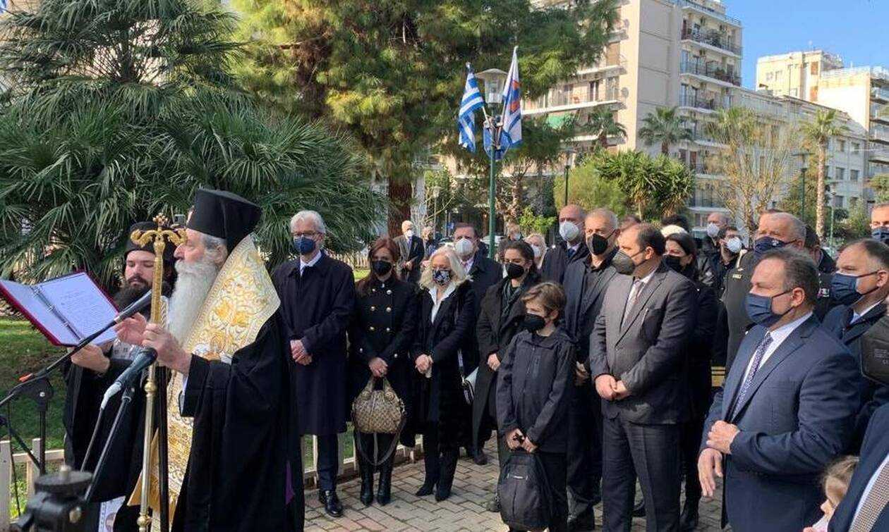 Η επιμνημόσυνη δέηση τελέστηκε στον ανδριάντα του Παναγιώτη Βλαχάκου, στην πλατεία Κωνσταντίνου Καραμανλή, χοροστατούντος του Σεβασμιωτάτου Μητροπολίτη Πειραιώς κ. Σεραφείμ.