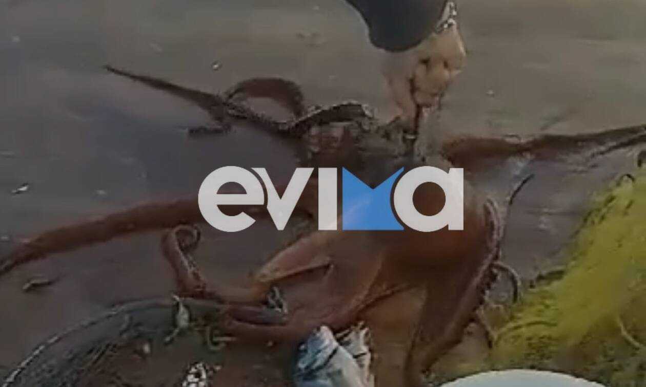 Εύβοια: Σύμφωνα με τον τυχερό ψαρά, το χταπόδι ζυγίζει περίπου 5.700 κιλά