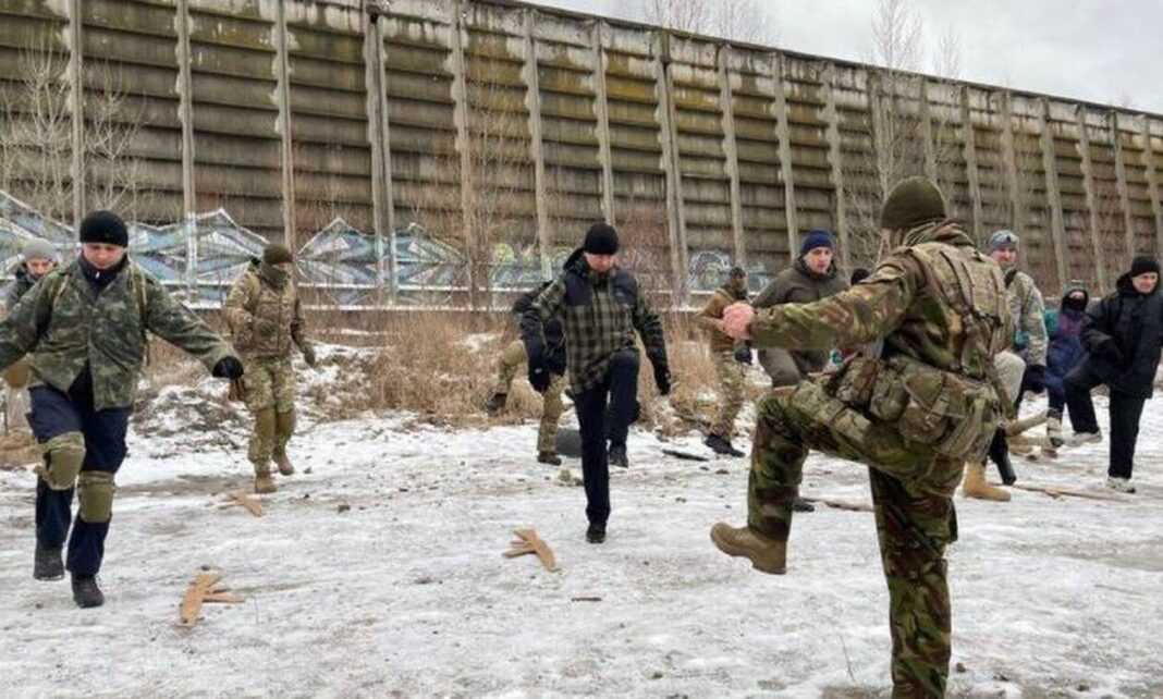 Τα Σαββατοκύριακα ακόμη και συνταξιούχοι συμμετέχουν σε ασκήσεις σε δάση έξω από το Κίεβο, όπου τα ερείπια εργοστασίων καλυμμένα με γκράφιτι μετατρέπονται σε πεδία μάχης. Οι άνδρες είναι πολύ μεγάλοι για να υπογράψουν επίσημα συμβόλαια, αλλά οι στρατιωτικοί εκπαιδευτές τους περιλαμβάνουν στα γυμνάσια.
