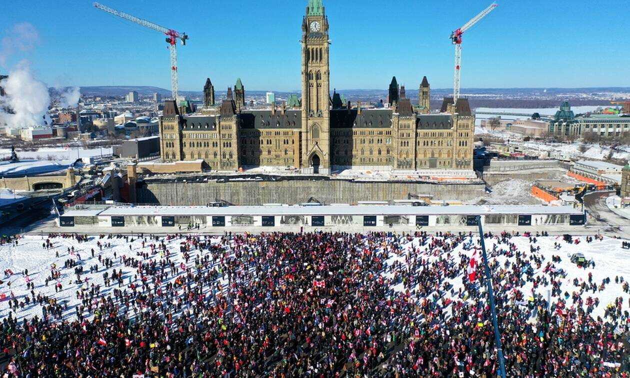Από το Σάββατο η πρωτεύουσα του Καναδά αποτελεί θέατρο ενός μεγάλου κινήματος διαμαρτυρίας, το οποίο ξεκίνησε από τους οδηγούς φορτηγών που ήταν αντίθετοι στον υποχρεωτικό εμβολιασμό τους κατά της covid-19 προκειμένου να μπορούν να διασχίζουν τα σύνορα μεταξύ του Καναδά και των ΗΠΑ.