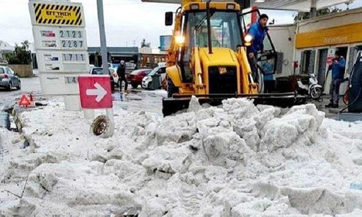 Μάλιστα, μηχανήματα του Δήμου και της Περιφέρειας Νοτίου Αιγαίου υπό την εποπτεία του Αντιπεριφεριάρχη και Επάρχου Θήρας Χαράλαμπου Δαρζέντα, έχουν βγει στους δρόμους και επιχειρούν να απομακρύνουν το χαλάζι, ώστε να κρατήσουν ανοιχτή την κυκλοφορία.